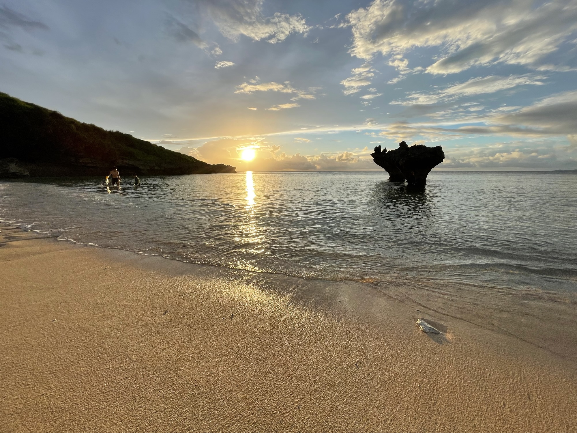 ちょっと寄るだけのつもりが、家族全員その夕暮れと海の美しさにどっぷりはまって、暗くなるまで過ごしました。