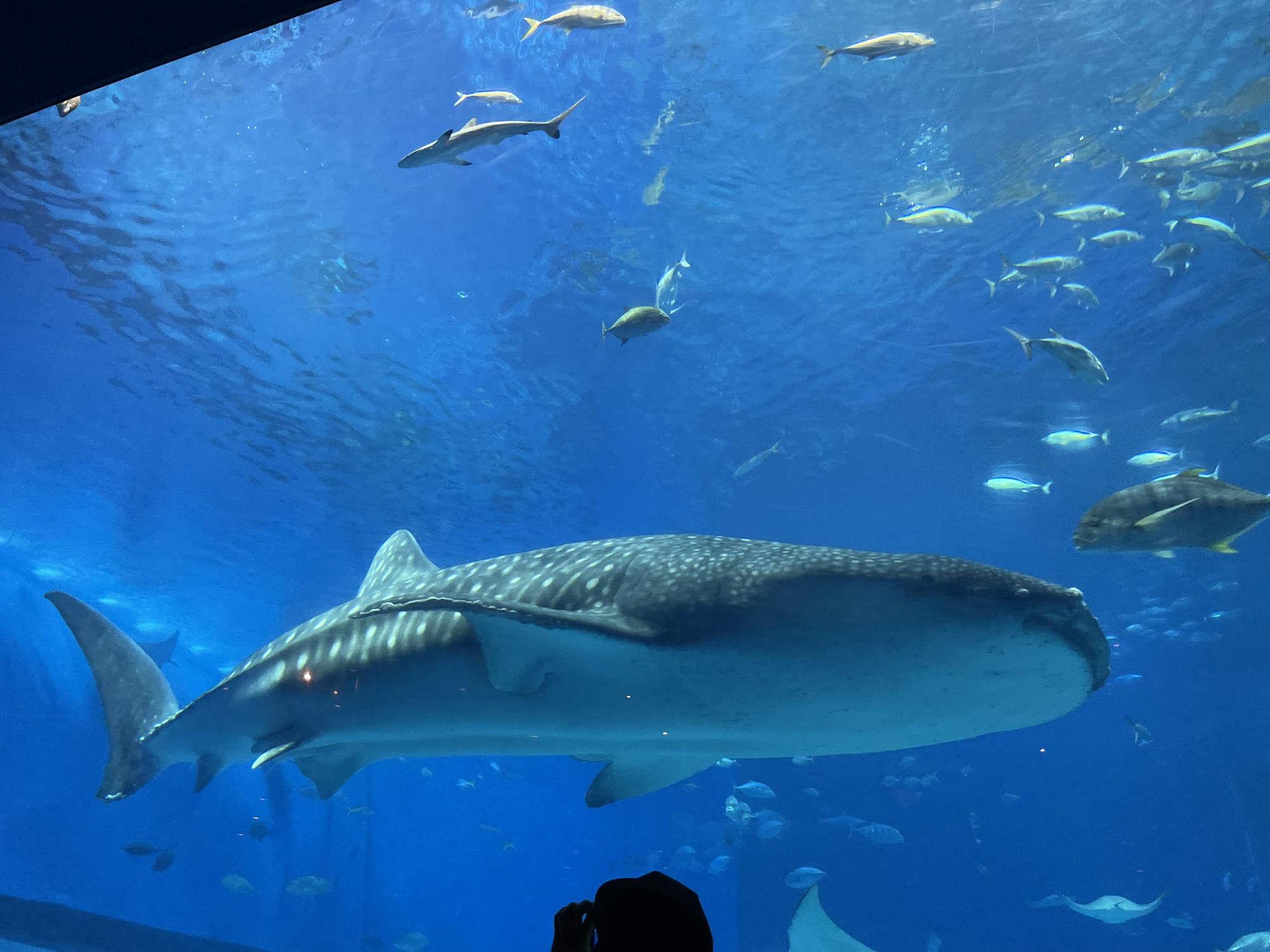 大きなジンベエザメがゆったりと泳ぐ姿に、たくさんの魚たちがキラキラと光の中を行き交う様子に見入ってしまいました。