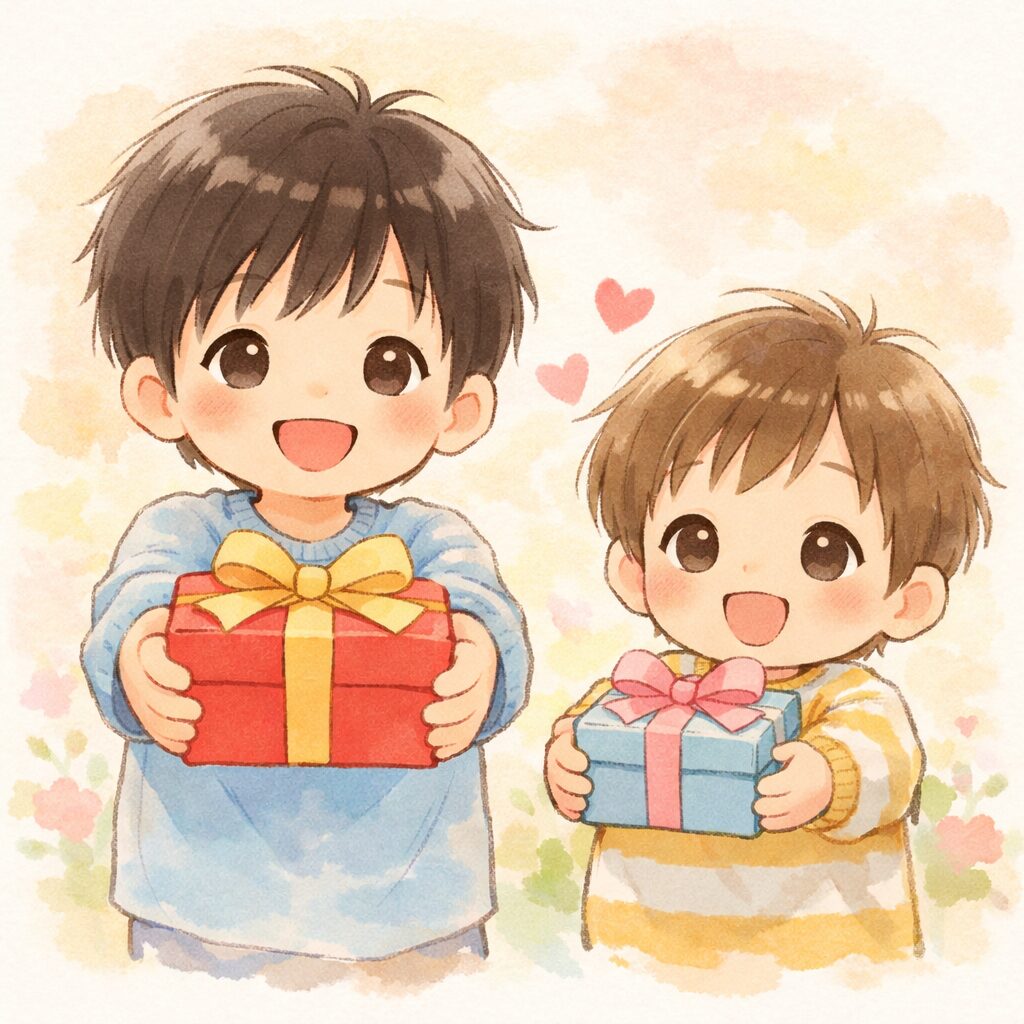 「今日は、パパとママの誕生日‼️だから、プレゼントあげるねー🎁」と。