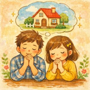 「神様が私たちにくださるべき物件なら、手に入れられるように、神様が気に留めない物件ならば、他の人に物件が渡るか、審査が落ちるようにしてください」と、